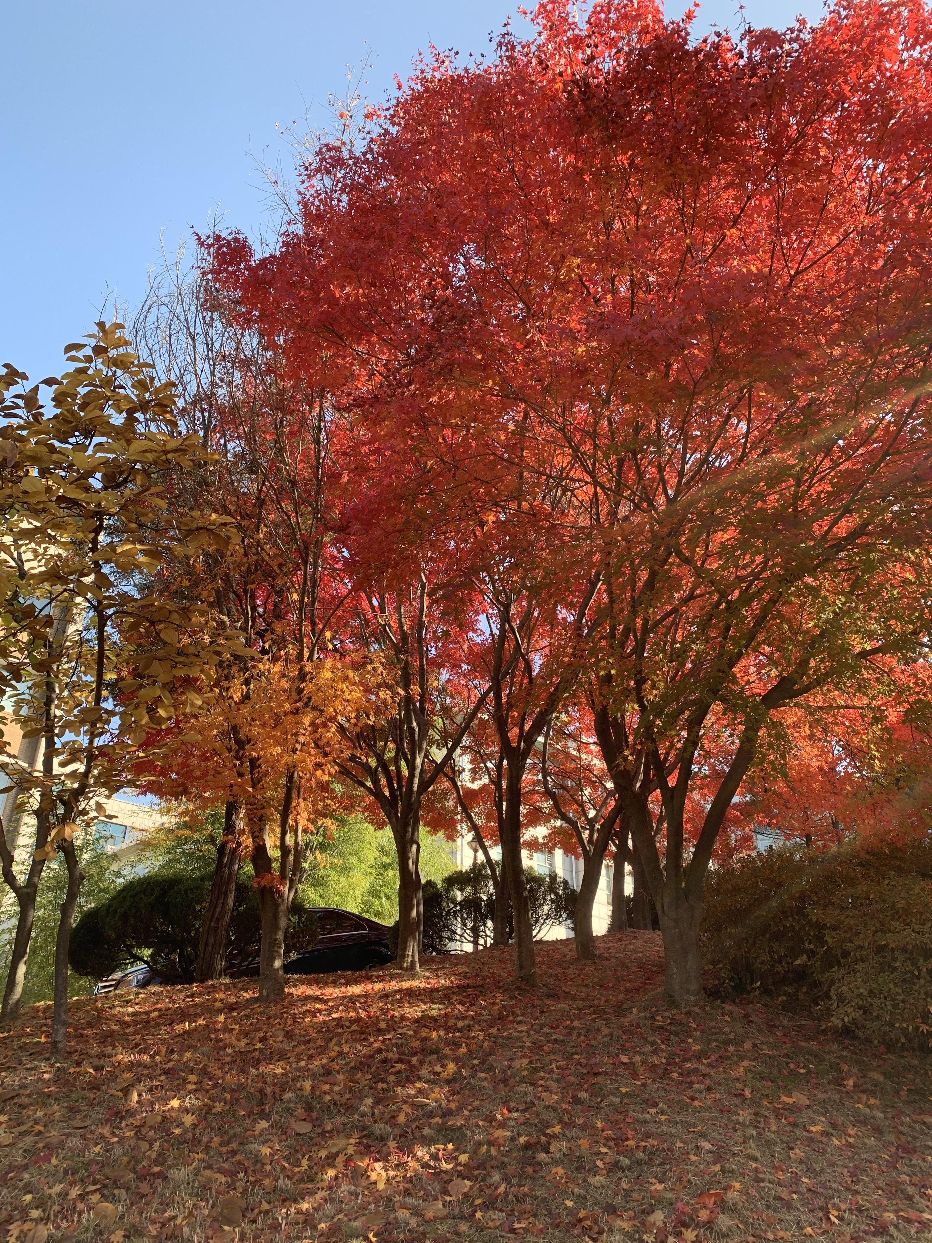 특히 연구실 앞마당의 유달리 새빨간 단풍나무.